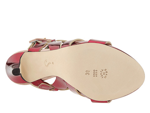 Elegante High Heel Alberto Fermani Plataforma! MEGAINE impressionado por uma Riemchengeflecht artisticamente cruzados. As vendas da plataforma de nove polegadas na camada de saltos olhar madeira dá uma forma muito feminina. O zíper no calcanhar para come?ar. MEGAINE - simplesmente refinado!